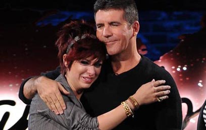 קאוול מחבק את בראון בסוף התוכנית. "רואים את השופטים כמדריכים"