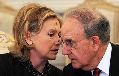 קלינטון עם השליח ג'ורג' מיטשל. "מחויבים לשיחות הקרבה" (צילום: AFP)