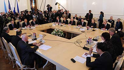 נציגי הקוורטט מכונסים במוסקבה, היום (צילום: AFP)