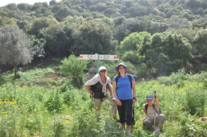 אוקיי, הסטיילינג לא ממש מוצלח, איתי נקרע מצחוק, אן מנציחה את המראה הלא ממש מלבב שלי ואני מקווה שלא אפגוש בדרך אף אחד שאני מכירה. ארבעה תיירים לא מזהים אותי לשמחתי, אבל הם מאוד שמחים לקראתנו. הם הגיעו מגרמניה במיוחד כדי לעשות את החלק הצפוני של שביל ישראל, והם מנסים לנווט את דרכם באמצעות חלקי תרשימים שהורידו מהאינטרנט, אחרי שלא מצאו מפה באנגלית.