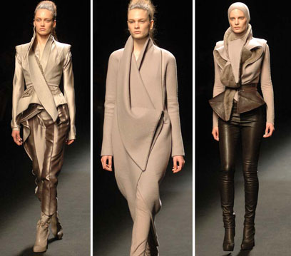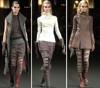 ריק אוונס, מעצב אמריקאי היושב בפריז, והיידר אקרמן צרפתי יליד קולומביה, ייצגו שנהם את הקצה הצעיר והאוונגרדי של הסקאלה הפריזאית. אוונס משתמש בעור ובפרווה הפוכה חתוכים א-סימטרית, ומרכיב מהם דגמים בעלי מבנה גיאומטרי נוקשה. הדגמים שעיצב לחורף הזה, יחד עם האיפור החתולי המדהים סביב עיניי הדוגמניות, יצר תחושה של שבט פרימיטיבי נשכח. אקרמן הצליח להעביר מסר עתידני בעזרת בניה חדשנית של המקטורן הגברי עם נוקשות פיסולית שהושגה על ידי עיבודי עור ייחודיים.