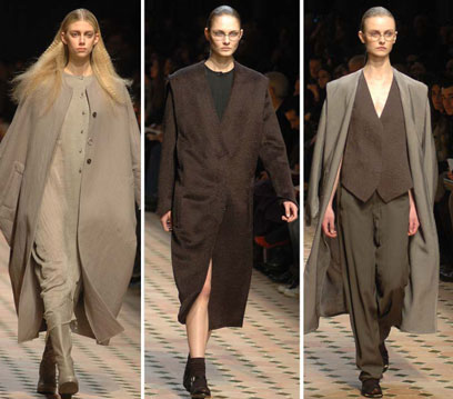 לימי פו, בתו של יוז'י יאמאמוטו, הציגה כבר בעבר קולקציות בהשפעת בגדי גברים. גם החורף לא נעלם אצלה המוטיב הגברי, אבל הגזרות המעוגלות והרחבות של המעילים והמקטורנים העניקו לקולקציה דווקא מראה מעודן ונשי יותר. איזבל מראן, בתורה, שילבה חולצות גבריות עם חצאיות מיני ועם מכנסי 3/4 צמודים בסגנון שנות החמישים. ז'קטים גבריים מעור שנלבשו מעל למקטורני ג'ינס השלימו את המראה הנשי-גברי בתצוגה.