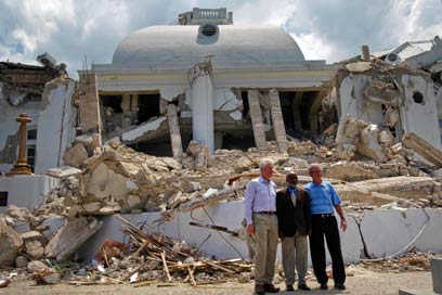 שני המנהיגים האמריקנים העומדים בראש מאמץ גיוס התרומות לשיקום המדינה הענייה ערכו סיור משותף ראשון בבירה ההרוסה. הנשיאים ביקשו להזכיר לעם האמריקני שהאיטי זקוקה לעוד סיוע, ובוש הבטיח לקדם יזמות במטרה להמריץ את הכלכלה