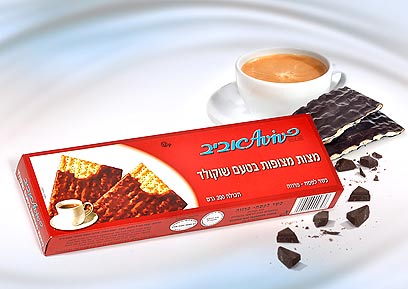 מצות אביב מציעה מצות מצופות בטעם שוקולד. מחיר לאריזה במשקל 200 גרם: כ-20 שקל. בנוסף, עוגיות "לבביות" - עוגיות בצרות לב, מצופות בחלקן העליון במעטפת בטעם שוקולד. העוגיות נמכרות במיכל פלסטיק הניתן למחזור. משקל 400 גרם במחיר כ-20 שקל.