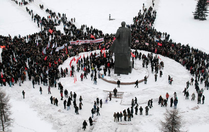 מתכנסים ליד הפסל של לנין, ארכנגלסק היום (צילום: רויטרס)