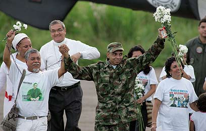 ארגון "צבא המהפכה של קולומביה" (FARC) שחרר הלילה (יום ד') חייל שהוחזק בשבי במשך 12 שנה בג'ונגלים שבדרום המדינה. ארגון הצלב האדום הודיע כי פבלו אמיליו מונקאיו - אחד מוותיקי החטופים המוחזקים על-ידי המחתרת המרקסיסטית - הועבר במסוק ברזילאי לעיירה פלורנסיה ושם התאחד עם בני משפחתו.