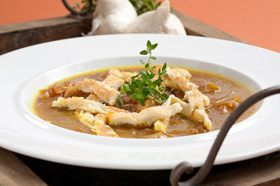 - יוצקים את המרק לקערות הגשה, מפזרים מעל מעט טימין ומגישים.