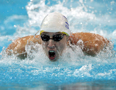 אלון מנדל ממישיגן סיים רביעי בגמר 100 מ' פרפר, לאחר שעצר את השעונים על 54.73 שניות, במרחק 2 מאיות השניה בלבד ממדלית הארד. במוקדמות הוא סיים חמישי מ-54 מתחרים בזמן 54.81 שניות. באותו המשחה השתתף גם גיא ברנע, אשר סיים את המוקדמות במקום הרביעי בזמן של 54.66 שניות, אך זה היה משחה משני עבורו ולכן נמחק מהגמר. ברנע השתתף גם במשחה 50 מ' חופשי, אך נפסל.