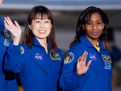 האסטרונאוטיות סטפני ווילסון ונאוקו יאמאזקי (צילום: AP)