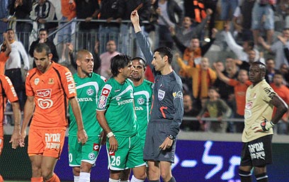 ליאור רפאלוב סופג כרטיס אדום (צילום: אלי אלגרט)