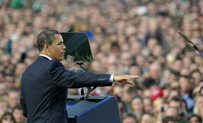 הבטחה לעולם נקי. נאום אובמה בפראג, אפריל 2009 (צילום: AP)