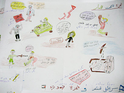 התמודדות עם מבצע "עופרת יצוקה" באמנות. ציורי ילדים ערבים במחנה