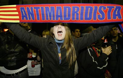 אוהדת ברצלונה בטירוף. אי אפשר לפספס אותם (צילום: AFP)
