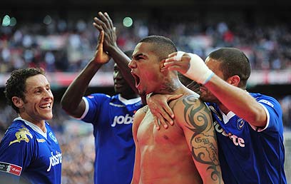 קווין פרינס בואטנג חוגג עם חבריו את השער השני (גטי אימג'ס)