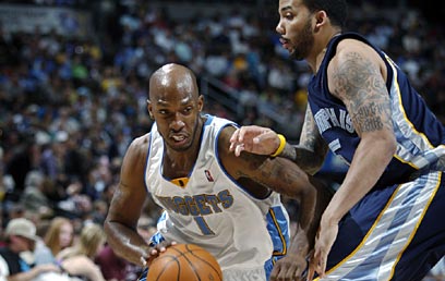 הנאגטס סיימו עם מאזן של 7:34 בבית, נכון לעכשיו הכי טוב במערב, כאשר המשחק שיקבע את מיקומם הסופי יהיה ביום רביעי מול פיניקס. ארבע שחקנים קלעו לדנבר במספרים כפולים: ג'יי. אר. סמית 26, ארון אפללו 22 ו-13 ריב', כרמלו אנתוני 21 ו-ננה סיים עם 20. בממפיס הצטיין מייק קונלי עם 22 נק'.