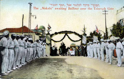 13. ארגון "המכבי" מחכה ללורד בלפור אצל "שער הכבוד"