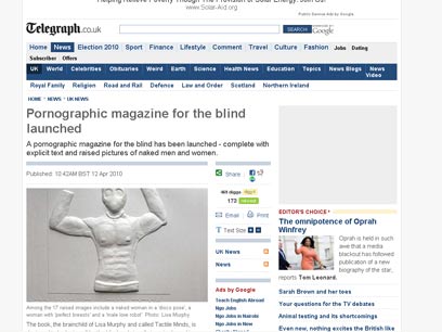 גם לעיוורים מגיע פורנו: ספר חדש העונה לשם "מוחות טקטיליים" (בעל אוריינטציה הקשורה למישוש) הושק בבריטניה ומטרתו יוצאת דופן ויומרנית במיוחד: לענות על צרכיהם של עיוורים בפורנוגרפיה, ממש כפי שעושים מגזינים כמו "פלייבוי" או "פנטהאוז" לאוכלוסיה הרואה.