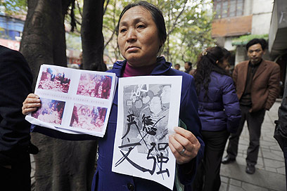 משפחותיהם של קורבנות "הסנדקית" הפגינו בצ'ונגקינג (צילום: AFP)