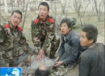 חיילים ואזרחים חפרו באתים ובידיים חשופות אל תוך הלילה (יום ה') בניסיון להגיע לניצולים תחת הריסות הבתים והמבנים באזור הררי ומרוחק במערב סין, שנפגע ברעש האדמה החזק אתמול. סוכנות הידיעות הסינית הרשמית "שינהואה" דיווחה כי מניין ההרוגים הגיע ל-589 וצפוי לעלות. יותר מעשרת אלפים בני אדם נפצעו ברעידה.