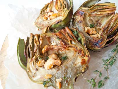 צליית ארטישוקים לוקחת זמן ודורשת סבלנות, אבל בהחלט שווה את מאמץ. הבוטנים המסוכרים נותנים טוויסט משדרג.