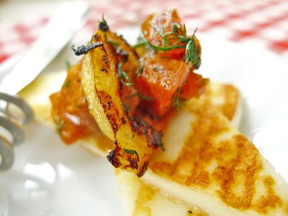 טמפרטורת ההמסה של גבינת החלומי גבוהה, דבר המאפשר את צלייתה על הגריל. אני בחרתי להגיש אותה לצד סלסה של משמשים מיובשים ולימונים צרובים.