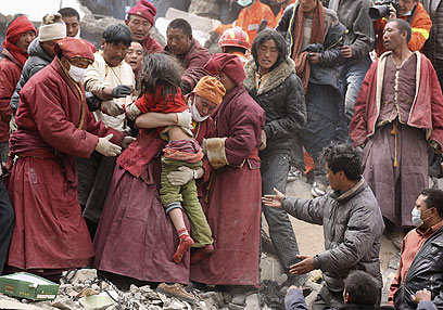 אלפים משוטטים ברחובות ללא קורת גג. מחלצים בטיבט (צילום: רויטרס)