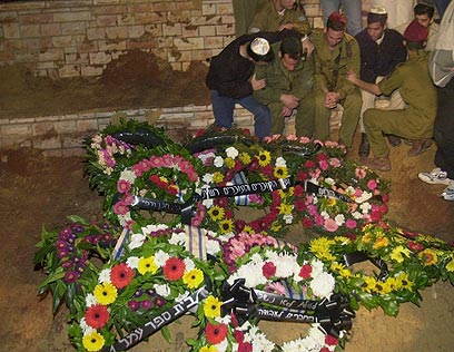 חברים ליד קברם של דודו אילוז ואופיר מגידיש (צילום: מאיר אזולאי)
