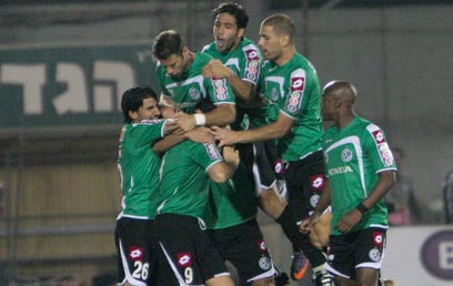 שחקני מכבי חיפה חוגגים (צילום: חגי אהרון)
