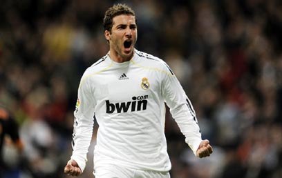 היגוואין חוגג את שערו ה-25 בלה ליגה העונה (AFP)