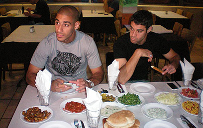 יניב קטן ושלומי ארבייטמן בארוחת הגיבוש (צילום: עדי סרדס)