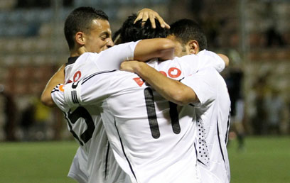 שחקני בית"ר חוגגים את הניצחון מול אשדוד (צילום: עוז מועלם)
