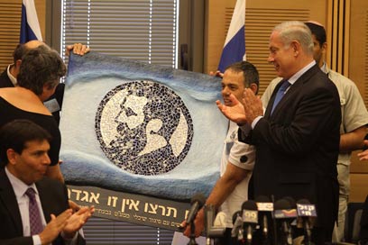 בישיבת הסיעה קיבל נתניהו שי מילדים עם מוגבלויות (צילום: גיל יוחנן)