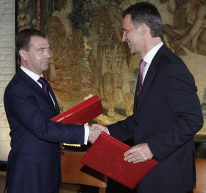 ראש ממשלת נורבגיה ונשיא רוסיה הסכימו היום (ג') להסדיר את הגבול בין המדינות לאורך האוקיאנוס הארקטי. ההסכם הפתיע רבים לנוכח העובדה שהמשא ומתן נמשך עשרות שנים ובאחרונה דווקא התגבר העימות סביב הקוטב הצפוני העשיר במשאבי טבע.