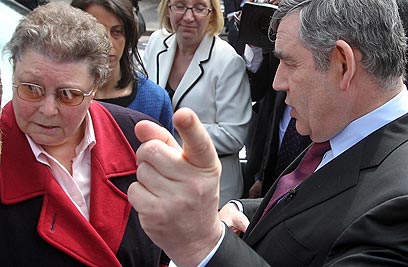 שמונה ימים נותרו עד לבחירות הכלליות וראש ממשלת בריטניה, המפגר בסקרים, מנסה לגייס כל קול אפשרי. אולם גורדון בראון ספג היום (ד') מכה קשה כשמיקרפון של רשת טלוויזיה קלט אותו מכנה אשה "גזענית", שניות ספורות אחרי ששוחח עימה.