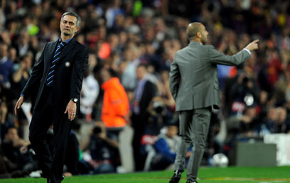 גווארדיולה עם מוריניו. "הסגנון השתלם להם" (גטי אימג'ס)