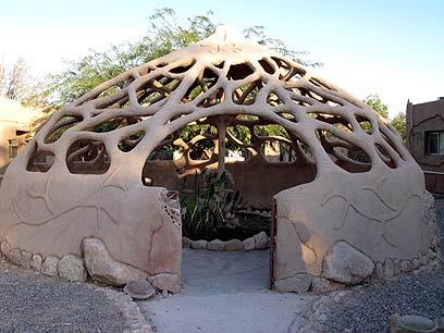 המבנים בנויים מחבילות קש, בוץ וחרסית. צוקים (צילום: רינת בשן)