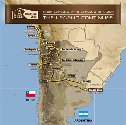 מירוץ הדקאר שוב משנה פניו, אך נשאר בדרום אמריקה. מירוץ הסיבולת הקשה והמפורסם בעולם, הדקאר, יוזנק בינואר 2011 בפעם ה-33. המירוץ האגדי, שבעבר הוזנק מפריז בדרכו לדקאר, יתקיים גם השנה בדרום אמריקה, אליה עבר לאחר איומי טרור קשים. אתמול (א') פרסמו המארגנים את פרטי המסלול הצפוי.