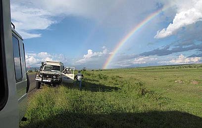 בשדה התעופה קיבלו את פנינו קשת יפהפייה והנהגים שליוו אותנו לאורך כל המסע, פילסו דרכנו בכפרים מרוחקים, חצו איתנו שלוליות בוץ חלקלקות, שרו איתנו שירים בסווהילית ובעברית, דאגו לנו ולרכושנו ובעיקר הביאו עימם אהבה, חיוך רחב וחום.