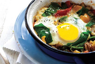 כיף לפתוח איתה את הבוקר. שקשוקה חצילים ותרד