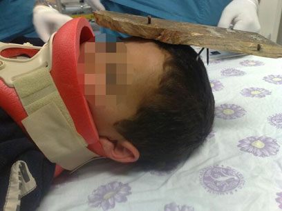 בתום הבדיקות שלפו הרופאים את המסמרים מראשו של הילד, ולאחר חבישה וטיפולים נגד זיהום הוא אושפז במחלקת הילדים להשגחה.