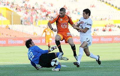 בעיטה עשירית: רחמים צ'קול בעט גבוהה מעל לשער - בני יהודה בגמר הגביע.