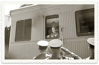 8. ביקור של מלך עיראק, פייסל השני (נראה בחלון הרכבת כילד) בארץ ישראל. פייסל היה נצר לשושלת ההאשמית, ומונה למלך עוד בהיותו ילד, לאחר שאביו, המלך גאזי, נהרג בתאונת דרכים. פייסל השני ובן-דודו, המלך חוסיין מירדן, למדו בצעירותם בבריטניה והיו פרו-בריטים בעת מלכותם.
