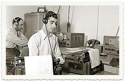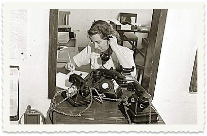 13-10. תצלומים מאולפני ומשרדי קול ירושלים. ראו את מכשירי הטלפון, המיקרופונים, מכונות הכתיבה ומקלט הרדיו - פאר הטכנולוגיה של אותם ימים
