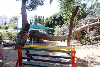 העץ שקרס בחצר הגן (צילום: אבי מועלם)