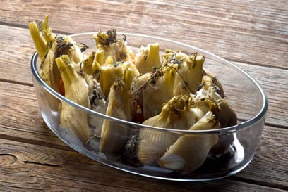 - חוצים בעזרת סכין חדה את פקעות השומר לשני חצאים, ומוציאים את הלב.