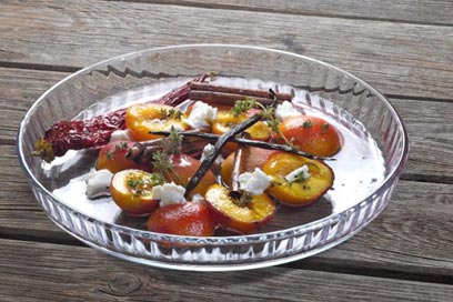 נקטרינות צלויות בתבלינים עם גבינה מלוחה