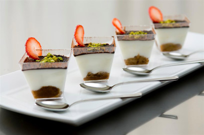 אז נתחיל מהסוף. גם אם קינוחים נתונים בכוסות קטנות זה כבר לא בדיוק הקטע הכי מקורי בעיר – ההגשה הזאת בכל זאת מצליחה עדיין לרגש. באופן אישי, נתקלתי בהן כבר לפני כמעט שבע שנים בפריז, במסיבת קוקטייל שהאוכל שהוגש בה התבסס כולו על מנות קטנות נתונות בכוסות - ממנות הפתיחה ועד הסיום. האוכל המתוחכם להדהים כלל את כל הרפרטואר הצרפתי הקלאסי עם טוויסט מעניין שמתבקש מצורת ההגשה. היו שם פטה של כבד אווז, מוסים של סלמון וקוויאר, צדפות ופירות ים, בשרים וקינוחים. זה היה כל כך מיוחד, שונה ו... ממוזער – עד כי נותרנו הלומים ורעבים ושמנו פעמינו הישר למזללה הקרובה להתנחם במשהו שאפשר לתקוע בו את השיניים. מאז עברו הרבה מנות בכוסות, והטרנד החביב הזה שטף גם את כל שירותי ההסעדה במקומותינו.