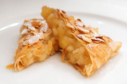 ווריאציה מתחכמת על בלינצ'ס הגבינה הקלאסי שהופך לחטיף מתוק מהודר. הגבינה היא מסקרפונה עשירה והשילוב עם השסק הטרי נותן עוד נופך נהדר. כמו כל דבר טוב שנגמר מהר, השסק מופיע ומיד נעלם. מחוץ לעונת השסק המנה תהיה נפלאה גם עם משמשים, תאנים או תותים.