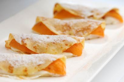 - מניחים קרפים בצלחת עמוקה. יוצקים עליהם מהרוטב, מניחים מעל כדור גלידה ומקשטים בפלחי תפוז. ומוסיפים ליקר תפוזים ופילטים של תפוז. מצננים לטמפרטורת החדר ומגישים.