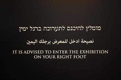 בכניסה אל אולם התערוכה מופיע שלט שאינו משתמע לשתי פנים "יש להיכנס אל התערוכה ברגל ימין". בשלב זה כבר התחלתי להזיע ולחפש את ספר התהילים שהחבאתי בכיסי עוד בבוקר. בהמשך עוד אאחוז בו ואגיד בליבי "מלח מים" לפחות שבע פעמים.